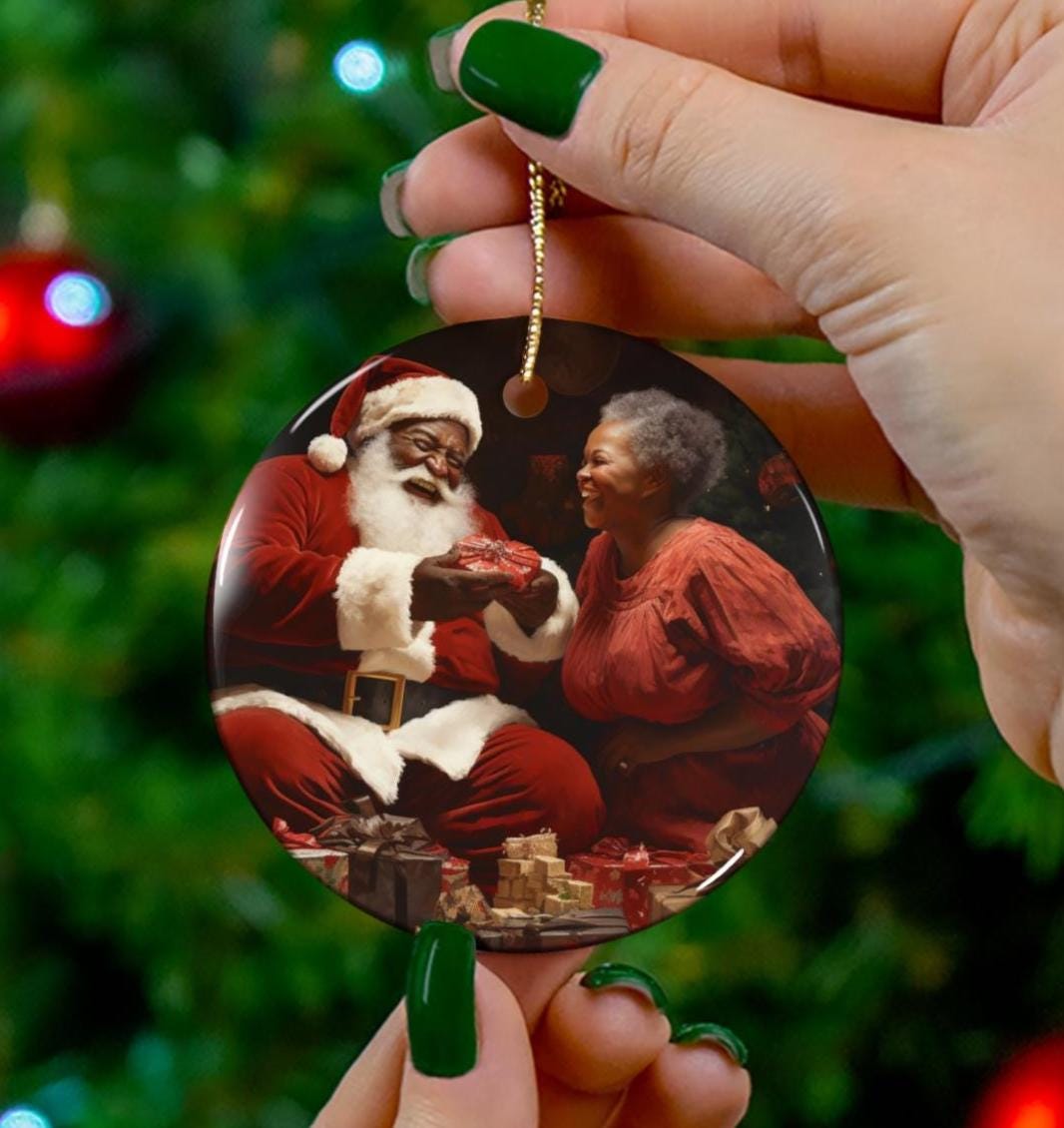 🎅🏾❤️🤶🏾 African American Santa & Mrs. Claus Christmas Ornament Set – Holiday Tree Decor Celebrating Love & Joy 🎄✨