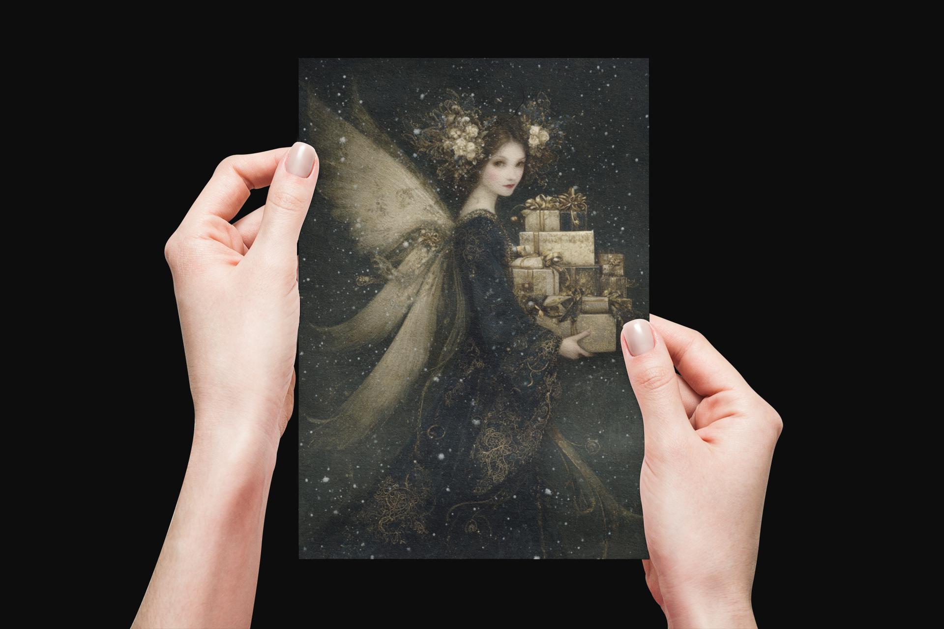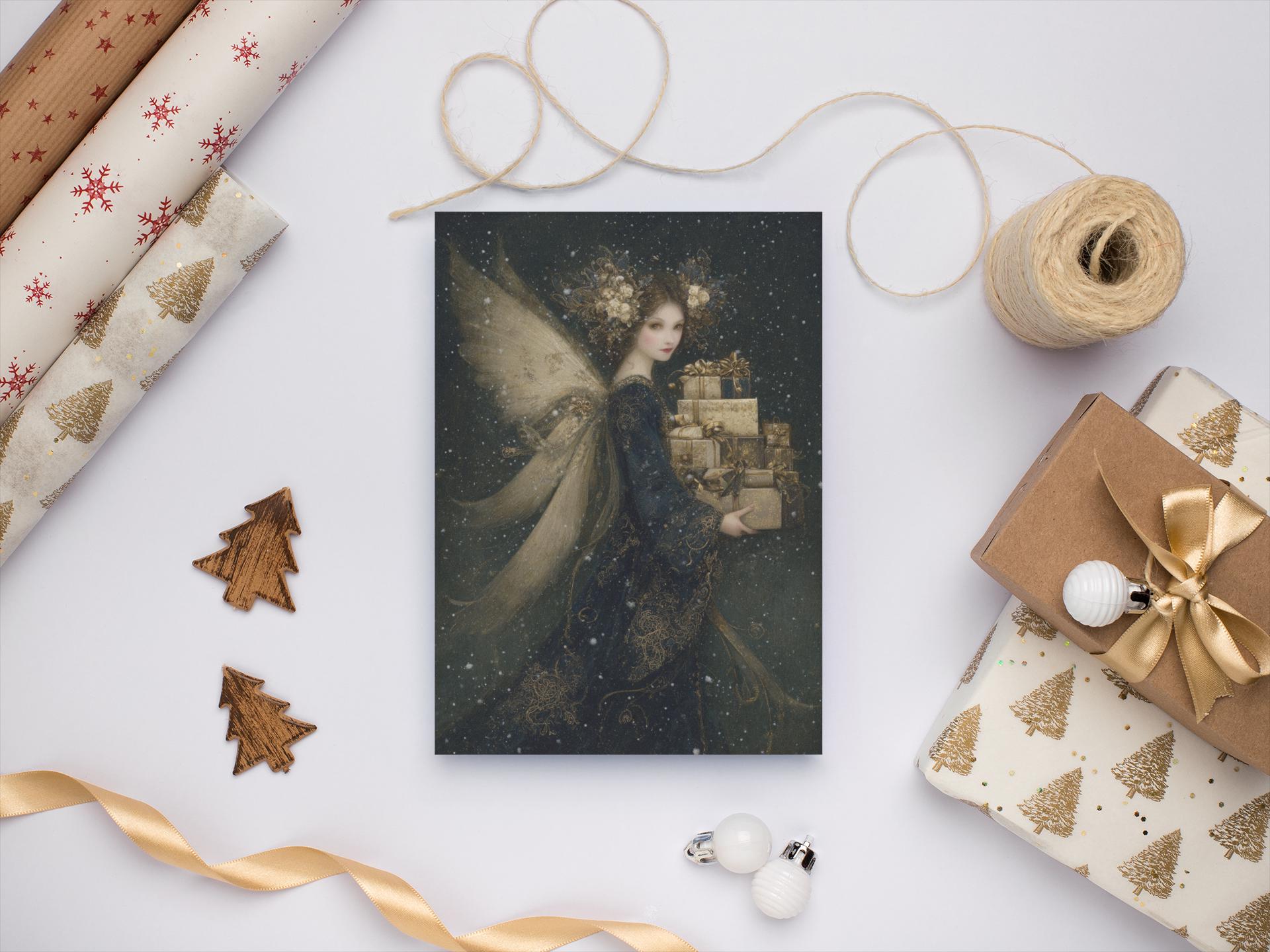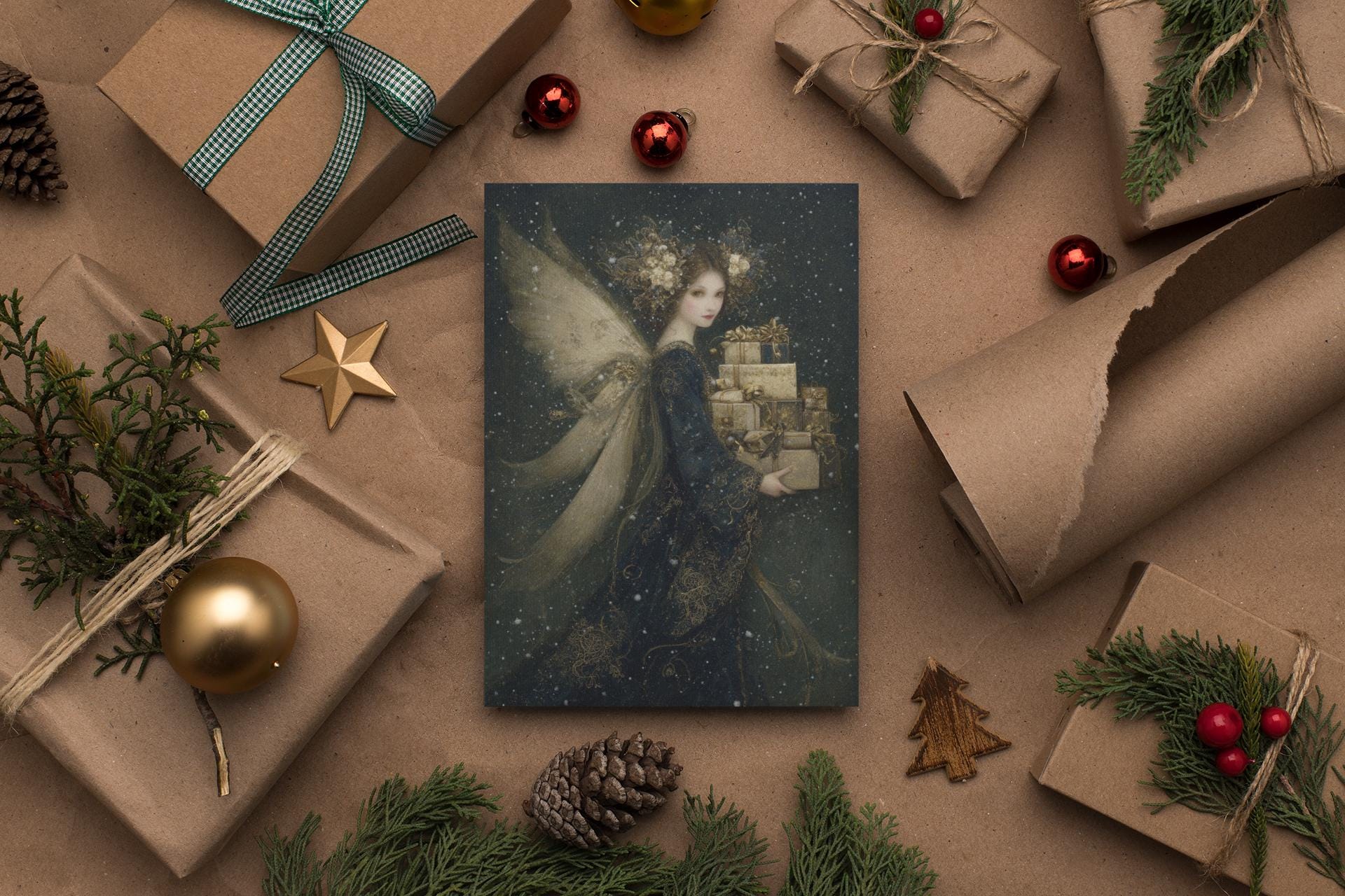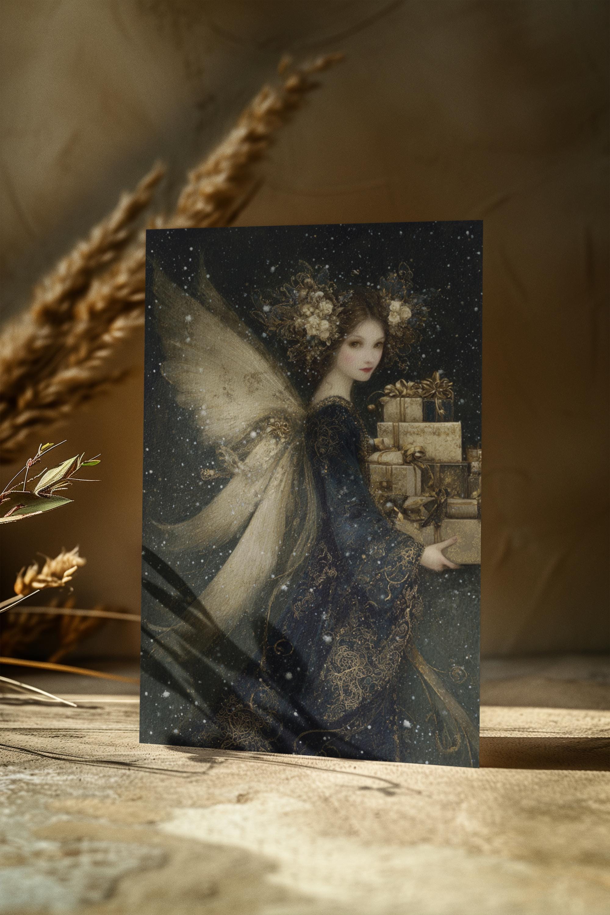 Holiday greetings, Christmas gifts, fairy lovers, angel collectors, fantasy art enthusiasts, or as a displayable mini art print.