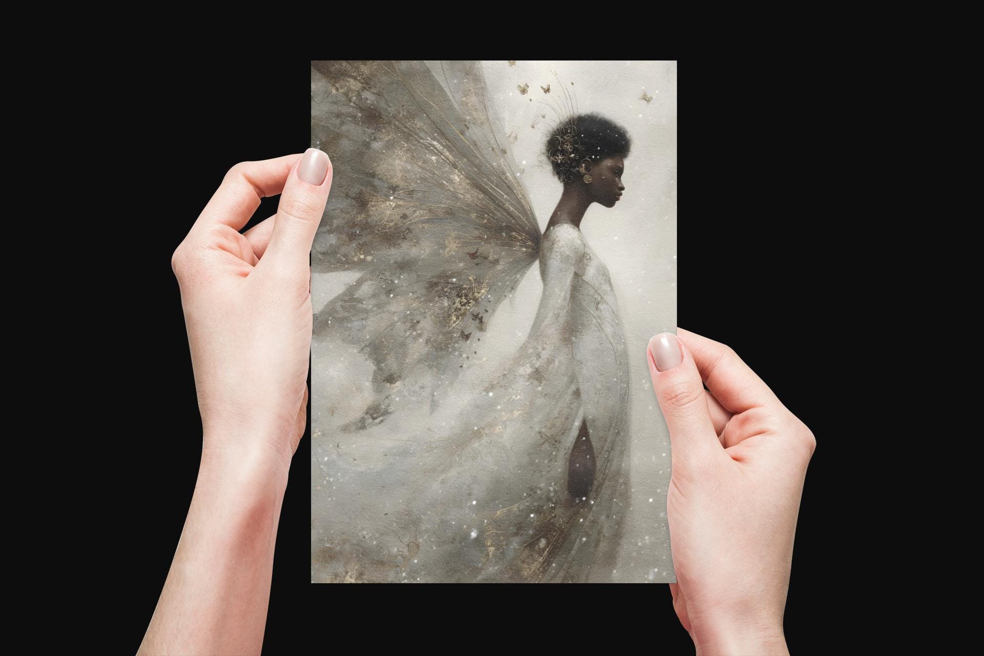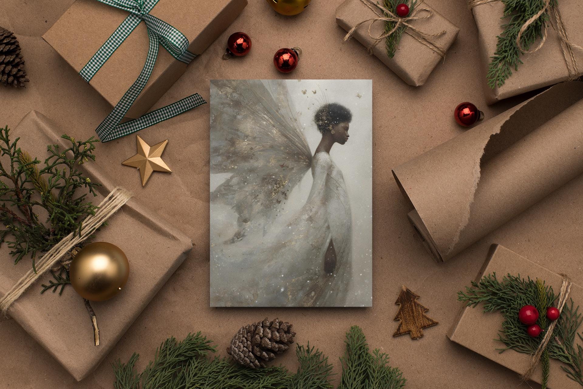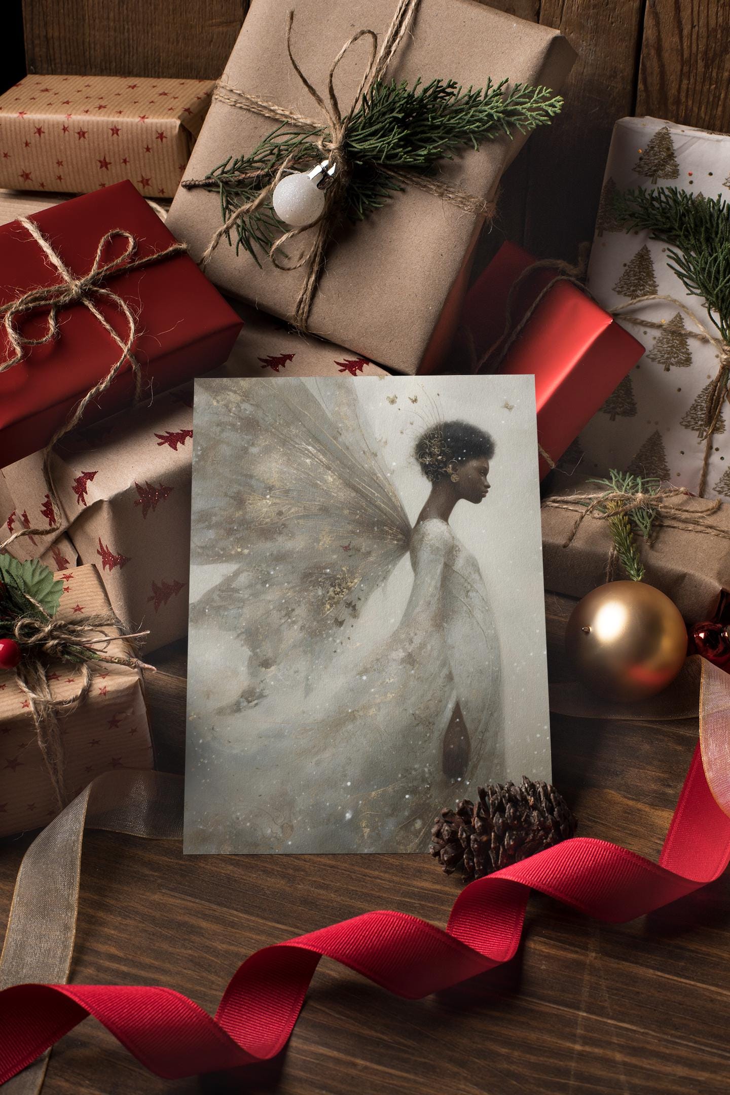 Share peace, love, and light this holiday season with our Black Angel Christmas Card. Featuring a beautifully illustrated angel in radiant tones and shimmering holiday hues, this card honors faith, beauty, and the spirit of the season.