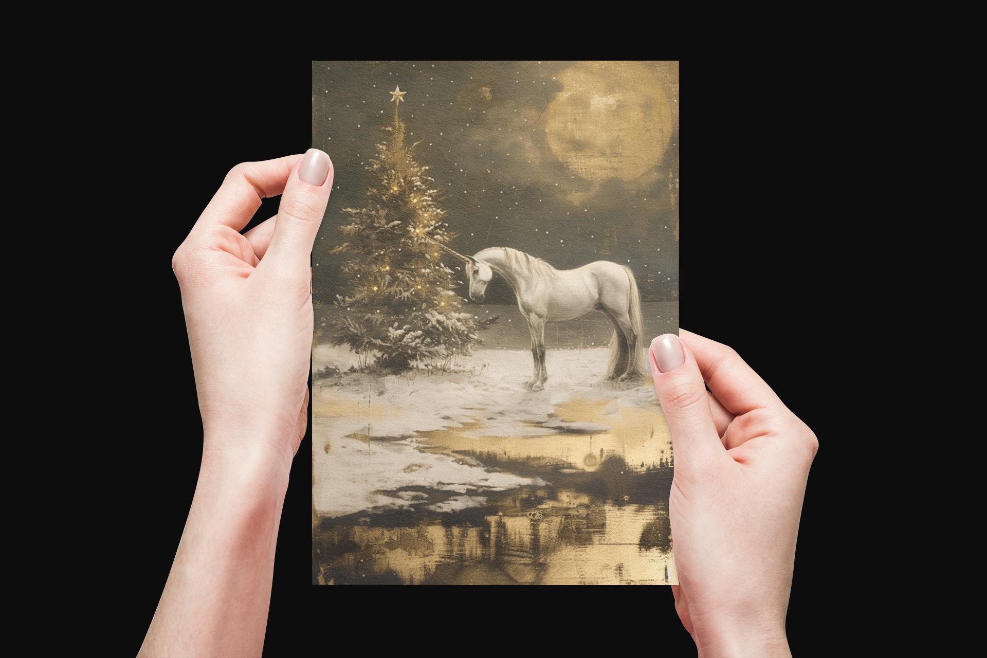 🦄🎄 Unicorn Christmas Postcard – Whimsical Holiday Greeting with Magical Winter Charm ✨💌