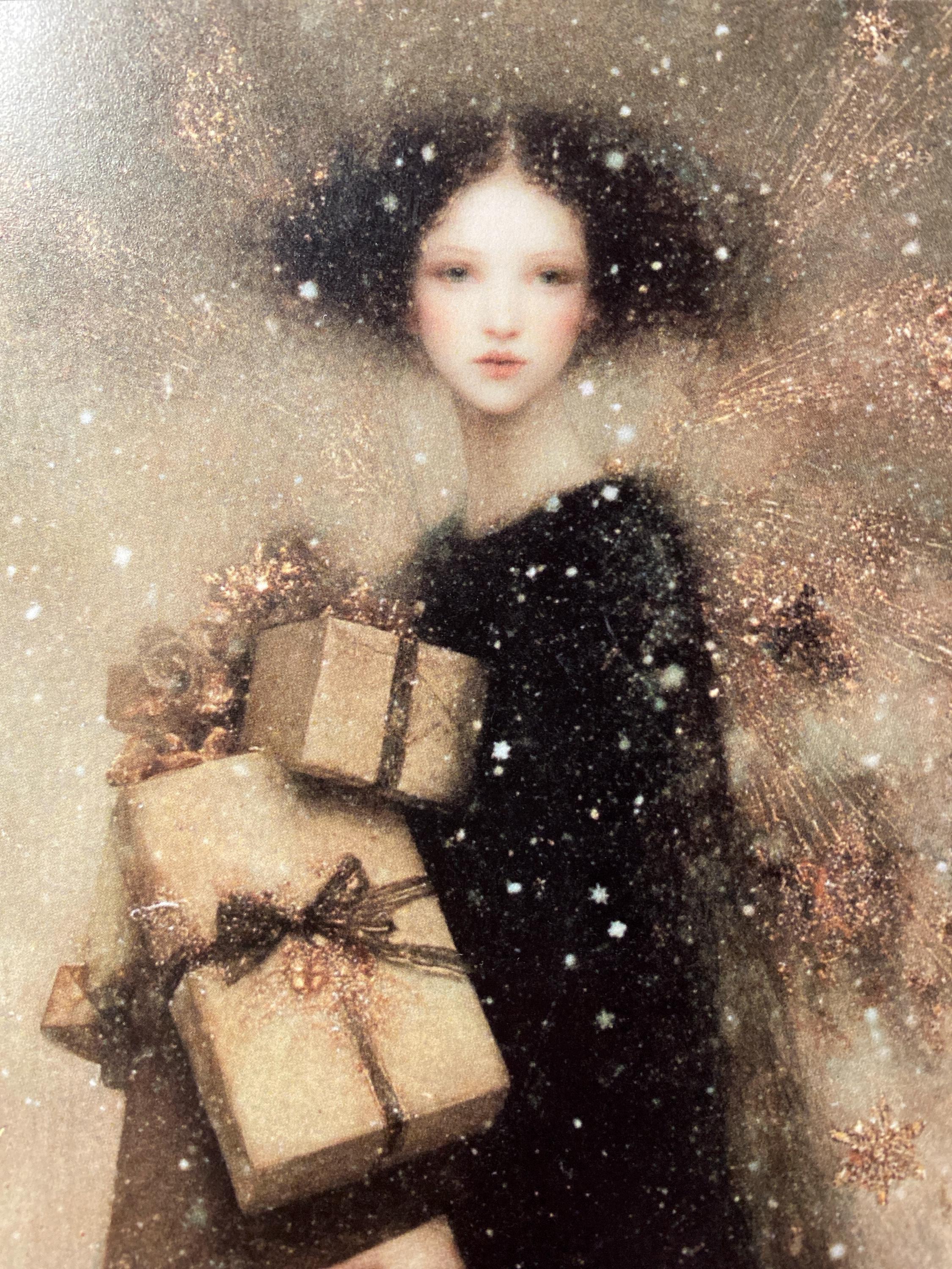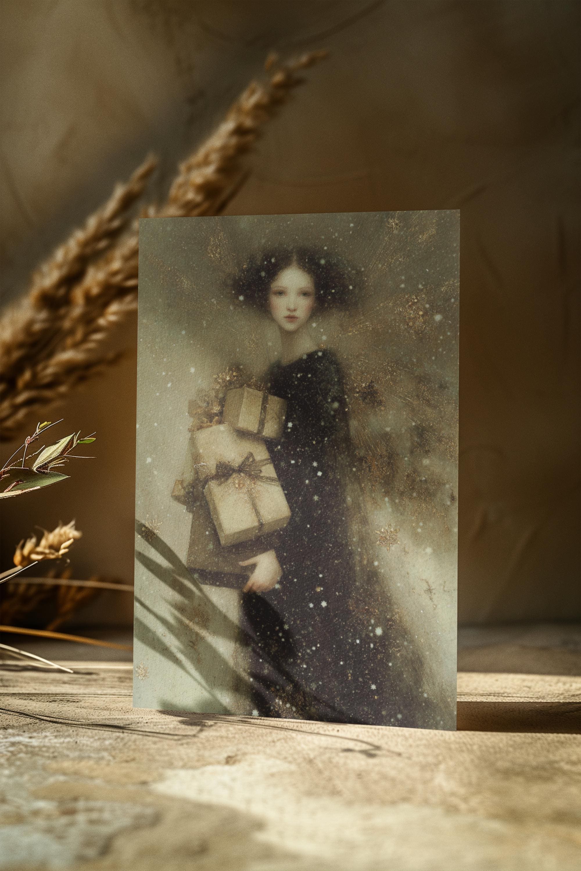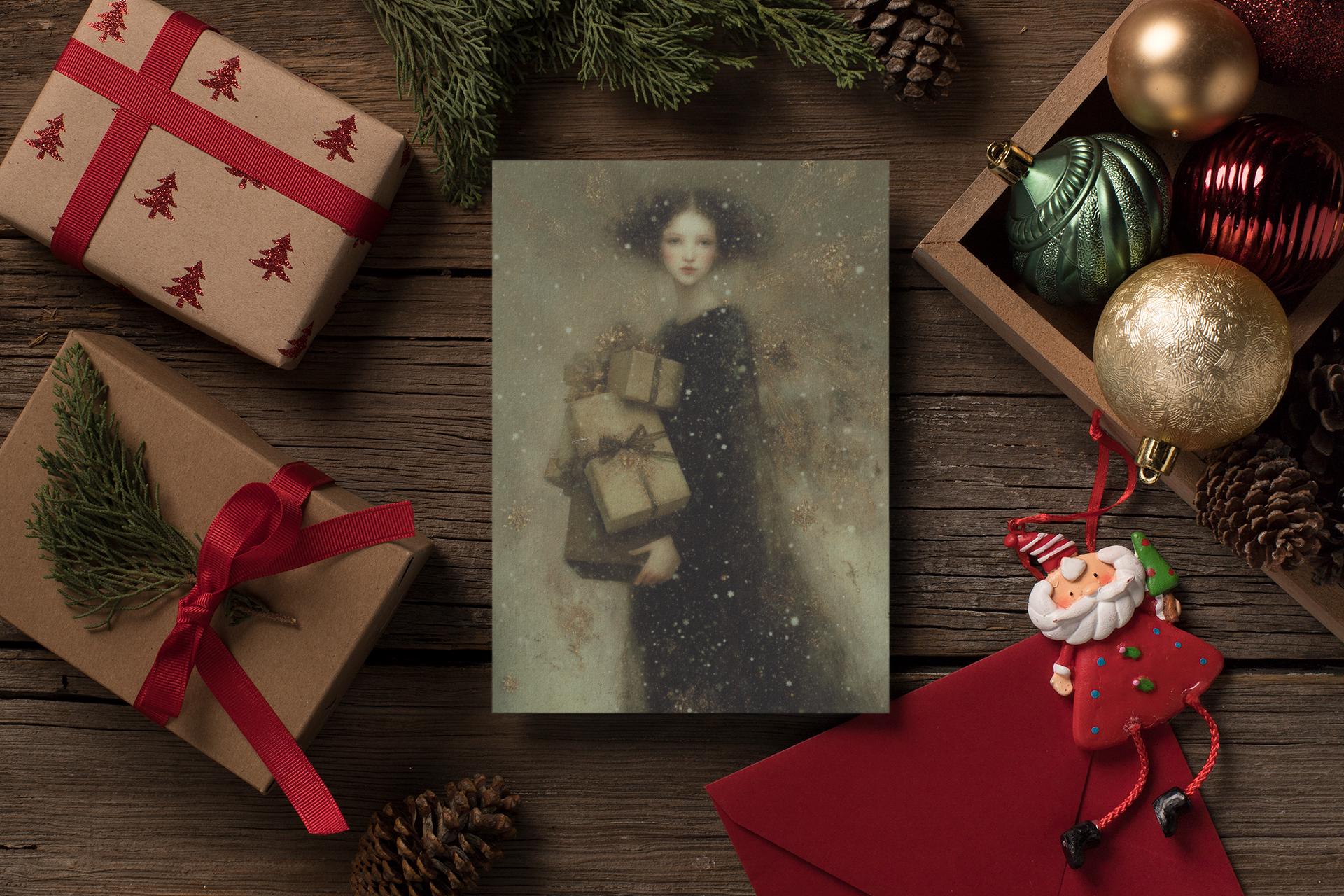 Holiday greetings, Christmas gifts, fairy lovers, angel collectors, fantasy art enthusiasts, or as a displayable mini art print.