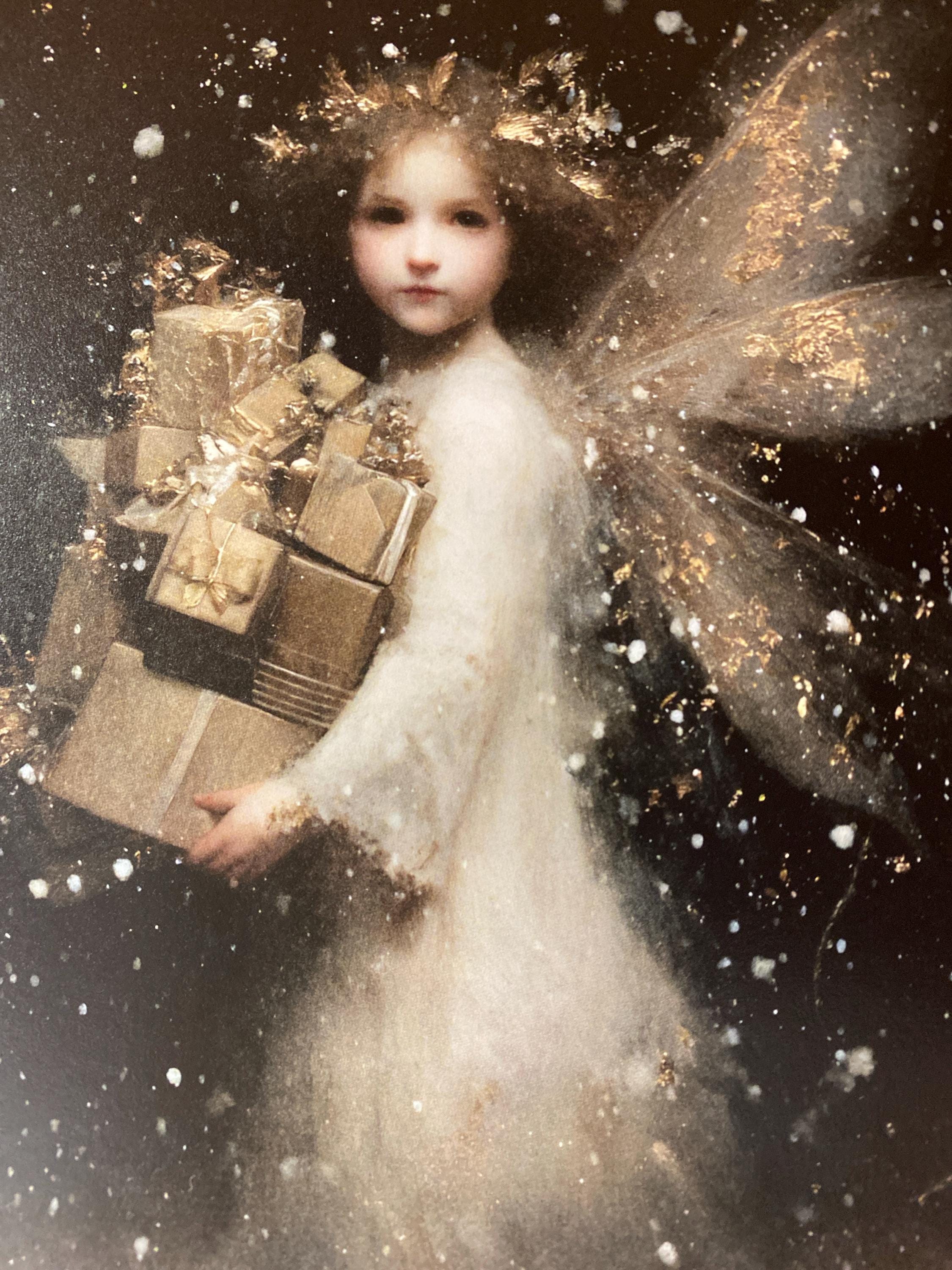Holiday greetings, Christmas gifts, fairy lovers, angel collectors, fantasy art enthusiasts, or as a displayable mini art print.